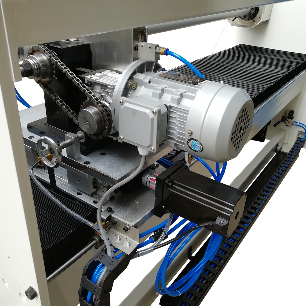 2. 電機控制系統(tǒng)為PLC可程式控制器,同軸中可設定2種尺寸,電腦于切割時自動調(diào)整切割寬度